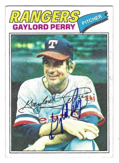 Autographed GAYLORD PERRY Texas Rangers 1977 Topps Card