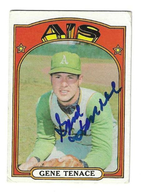 Autographed GENE TENACE Oakland A’s 1972 Topps Card