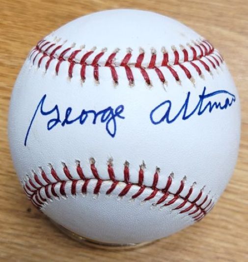 Official Rawlings Major League Baseball autographed by GEORGE ALTMAN . Ball is signed in blue ball point pen.