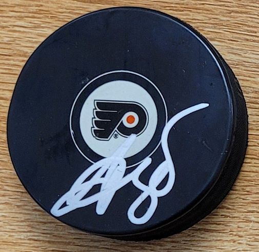 AUTOGRAPHED GERMAN RUBSTOV Philadelphia Flyers Hockey Puck. Signed in silver sharpie.