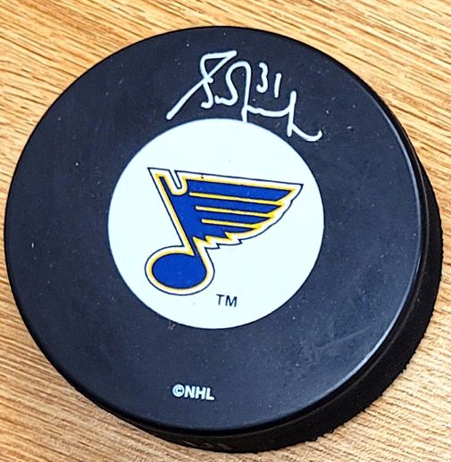 Autographed Hall of Famer, GRANT FUHR St. Louis Blues Hockey Puck. Signed in Silver sharpie.