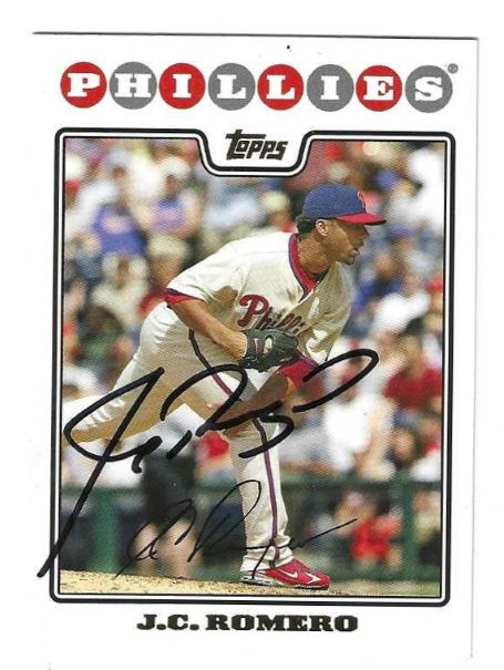 Autographed J.C. ROMERO Philadelphia Phillies 2008 Topps Card