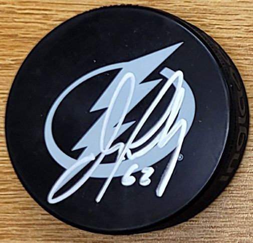 Autographed JACK FINLEY Tampa Bay Lightning Hockey Puck. Signed in Silver sharpie.