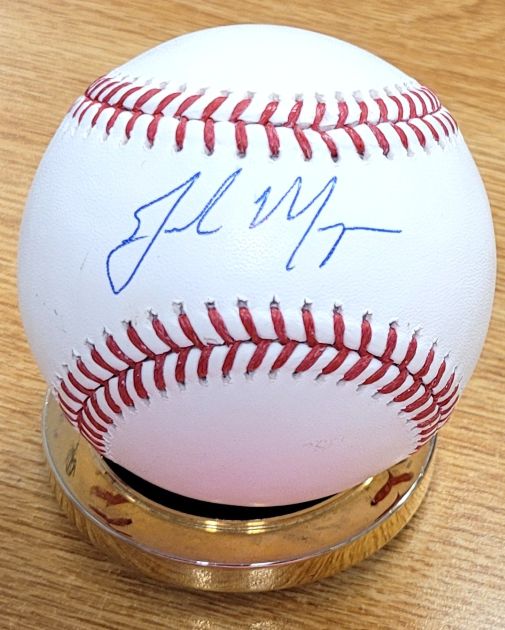 Official Rawlings Major League Baseball autographed by JAKE MANGUM. Ball is signed in blue ball point pen.