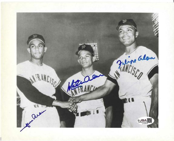Here is an UNIQUE item for San Francisco Giants baseball fans and collectors! It’s an autographed color 8″ x 10″ glossy photo of Jesus Alou, Matty Alou and Felipe Alou. JSA COA.