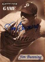 Autographed JIM BUNNING 1998 Fleer Legends of the Game Card. Condition of card is ex-mt shape. Card #7. Signed in blue sharpie.