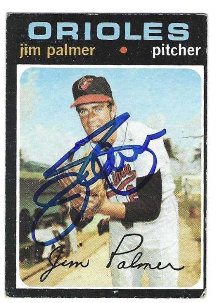 Autographed JIM PALMER Baltimore Orioles 1971 Topps Card #570. Signed in blue sharpie.