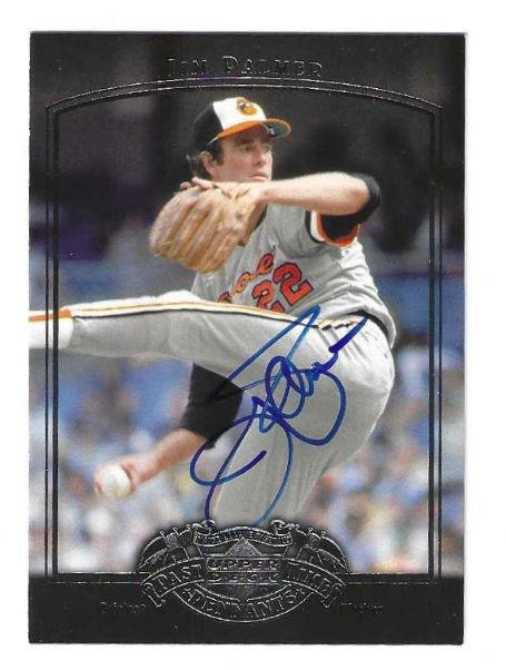 Signed JIM PALMER 2005 Upper Deck Past Time Pennants card #42 . Card is signed in blue sharpie.