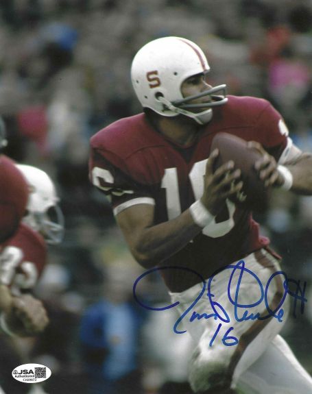 Autographed JIM PLUNKETT 8×10 Stanford University Photo. Mr. Plunkett won the Heisman Trophy in 1970. JSA COA.
