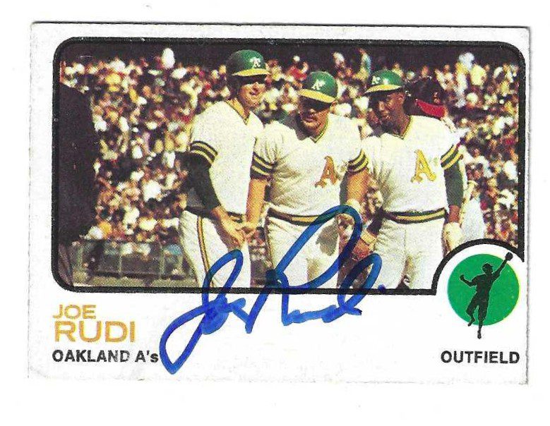 / Autographed JOE RUDI Oakland A’s 1973 Topps Card