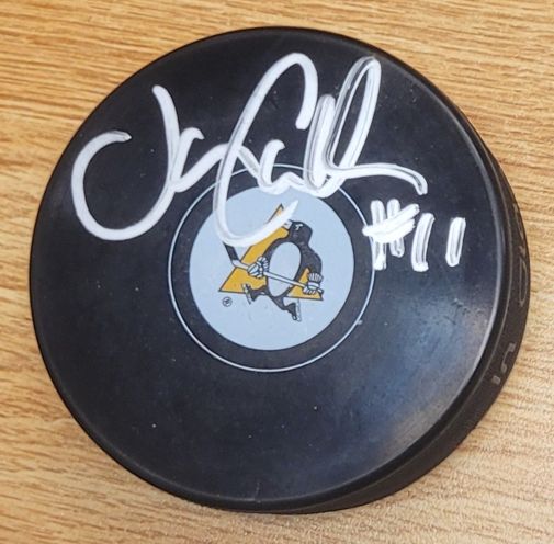 Autographed JOHN CULLEN Pittsburgh Penguins Hockey Puck. Signed in Silver sharpie.