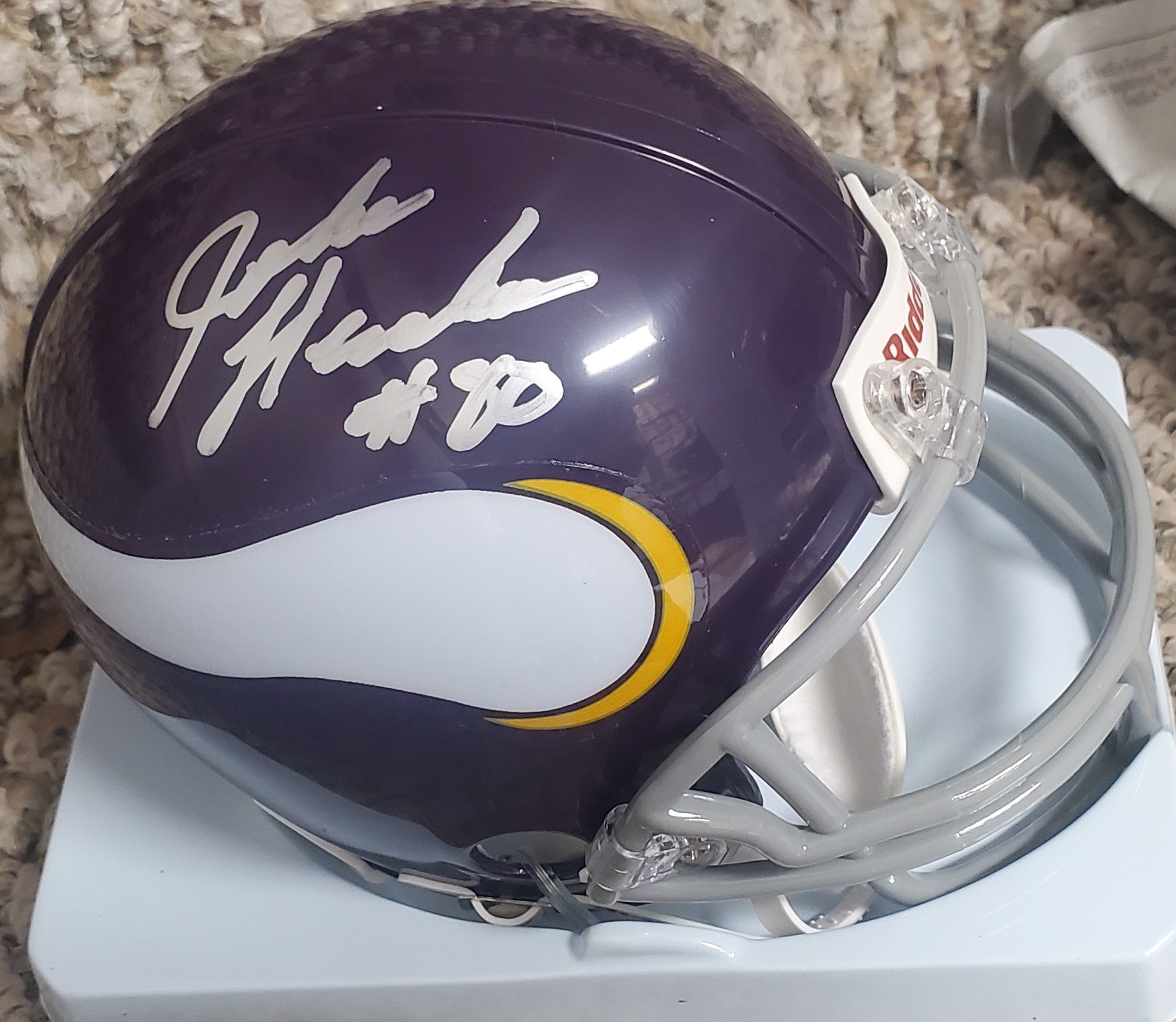 Autographed JOHN HENDERSON Minnesota Vikings mini helmet. Signed in sharpie and includes Certificate of Authenticity from MLA,LLC.