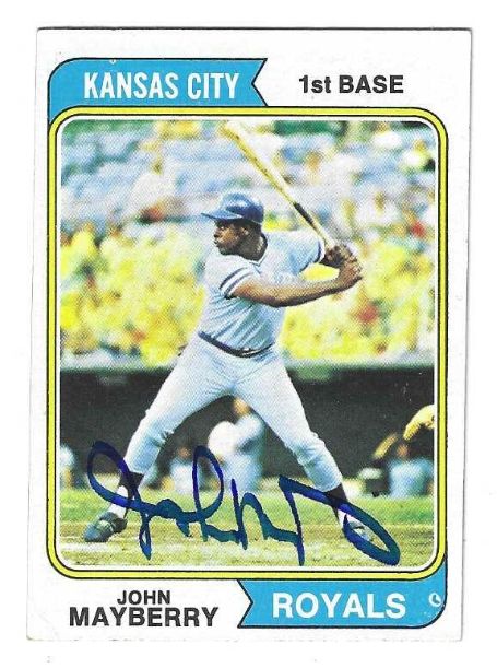 Autographed JOHN MAYBERRY Kansas City Royals 1974 Topps Card