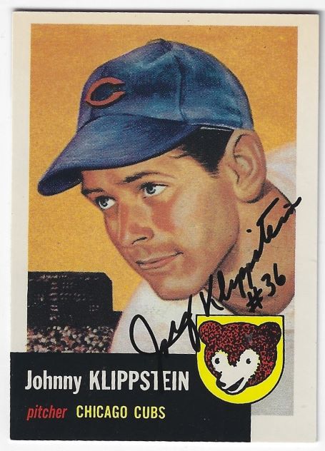 / Autographed JOHNNY KLIPPSTEIN Chicago Cubs 1953 Topps Archives Card