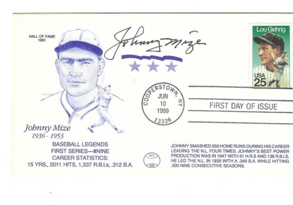 / Autographed JOHNNY MIZE New York Giants Cachet Cover