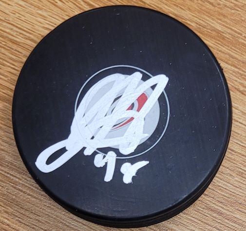 AUTOGRAPHED JORDAN MARTINOOK Carolina Hurricanes Puck. Signed in Silver sharpie.