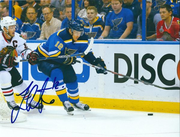 Autographed JORI LEHTERA 8X10 St. Louis Blues Photo. Signed in blue sharpie.