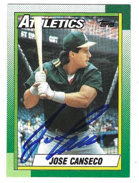 Autographed JOSE CANSECO Oakland A’s 1990 Topps Card