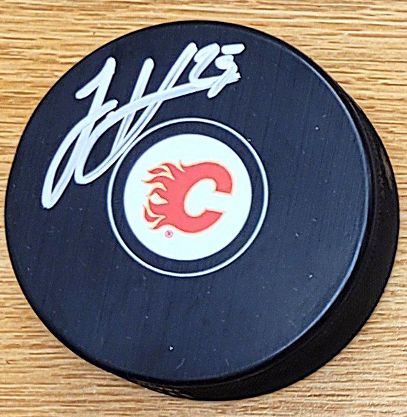 Autographed JUSTIN KIRKLAND Calgary Flames Hockey Puck. Signed in Silver sharpie.
