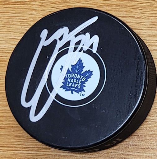 Autographed KASPERI KAPANEN Toronto Maple Leafs Hockey Puck. Signed in Silver sharpie.