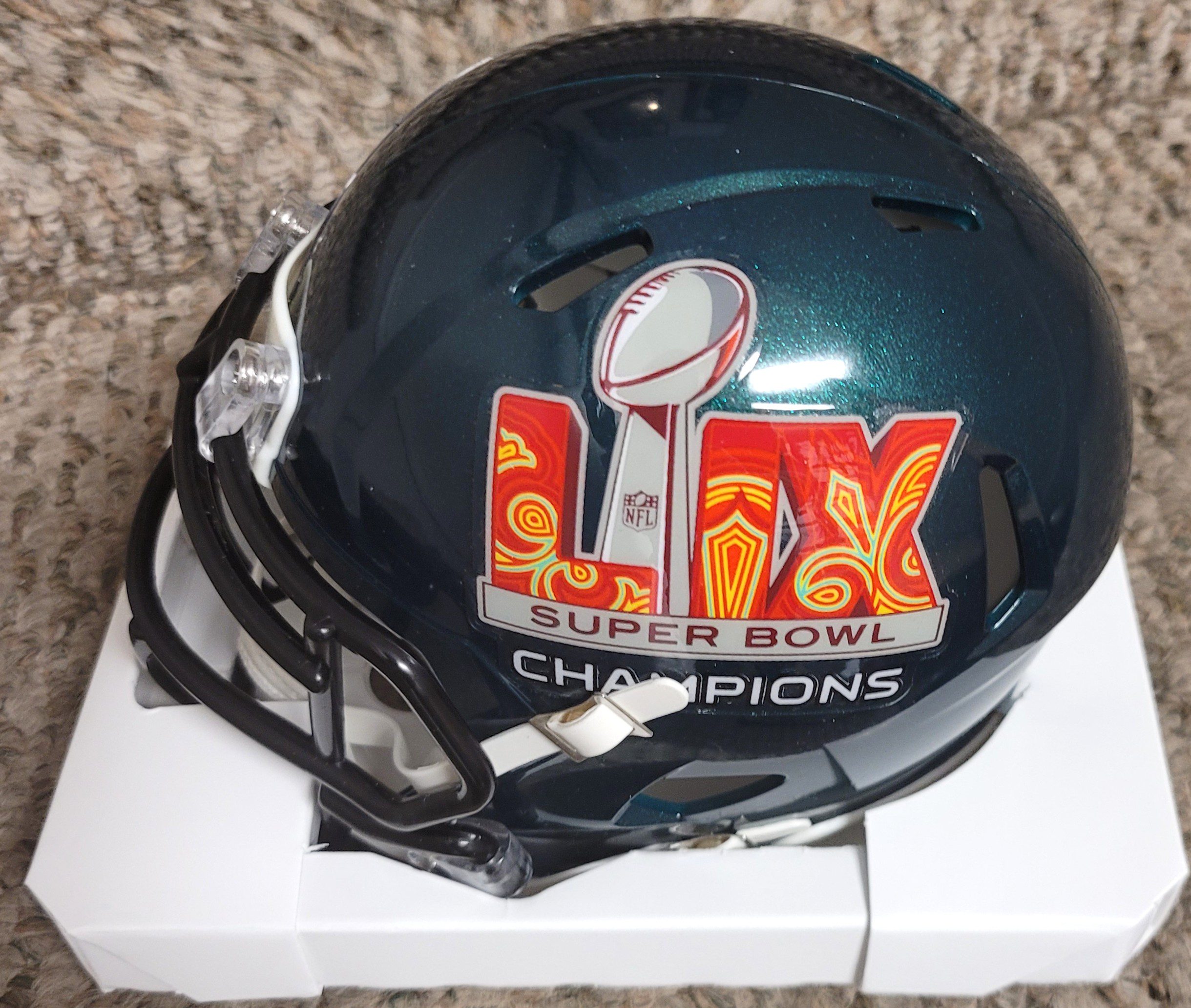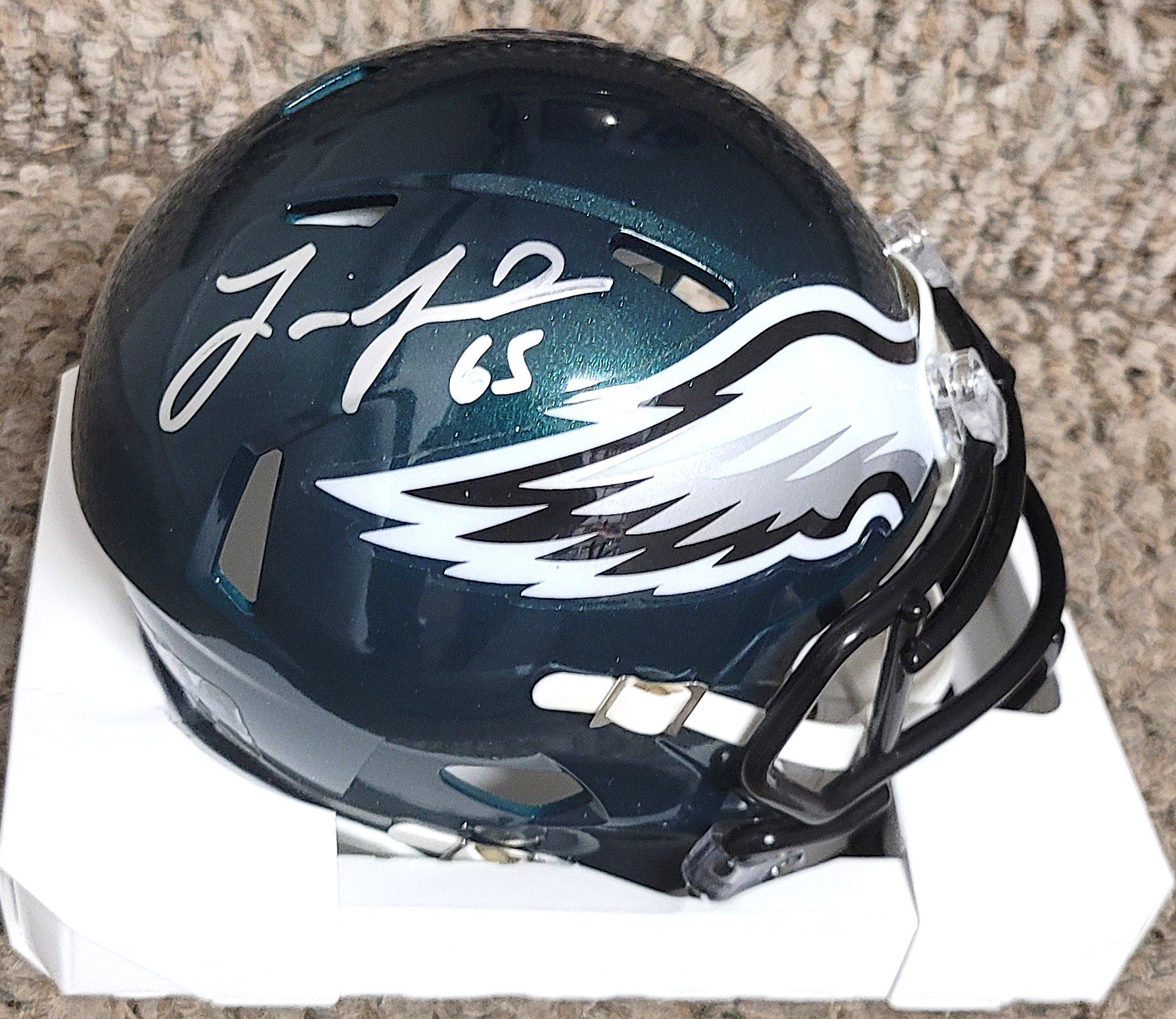 Autographed LANE JOHNSON Philadelphia Eagles Super Bowl LIX Mini Helmet. Signed in sharpie.