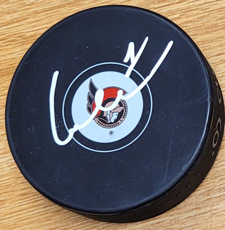 Autographed LEEVI MERILAINEN Ottawa Senators Hockey Puck. Signed in Silver sharpie.