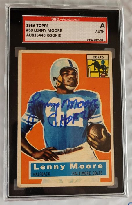 / Autographed Lenny Moore Baltimore Colts 1956 Topps Card #60 SGC Slabbed