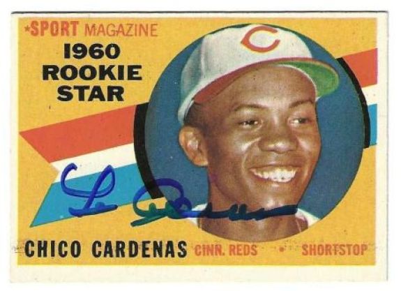 Autographed LEO CARDENAS 1960 Topps Card, #119. Signed in blue sharpie.