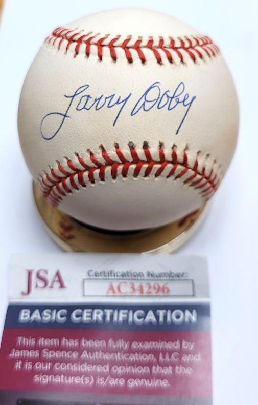 Official American League Baseball autographed by LARRY DOBY. Ball is signed in blue ball point pen. JSA COA.