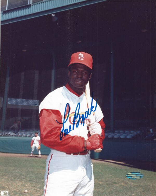 Autographed 8X10 photo of Baseball Hall of Famer LOU BROCK of the ST LOUIS CARDINALS. Comes with Steiner Hologram