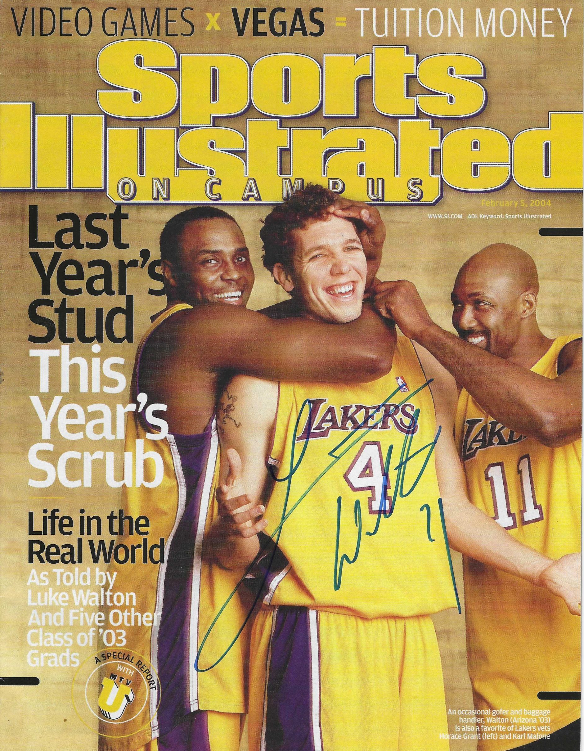 Autographed LUKE WALTON Los Angeles Lakers Sports Illustrated On Campus Magazine 2/5/2004