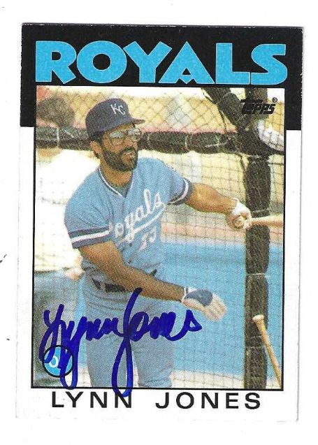 Autographed LYNN JONES Kansas City Royals 1986 Topps Card