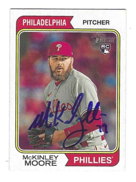 Autographed MCKINLEY MOORE  Philadelphia Phillies  2023  Topps  Heritage Card #524.