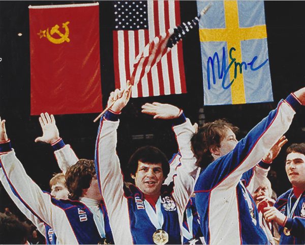 Autographed 8X10 photo of Gold Medal Winner, MIKE ERUZIONE. He won the gold medal as Captain of the 1980 USA Hockey Team.