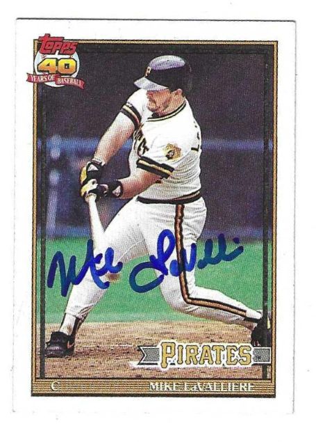 / Autographed MIKE LAVALLIERE Pittsburgh Pirates 1991 Topps Card