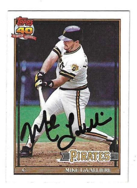 Autographed MIKE LAVALLIERE Pittsburgh Pirates 1991 Topps Card quantity