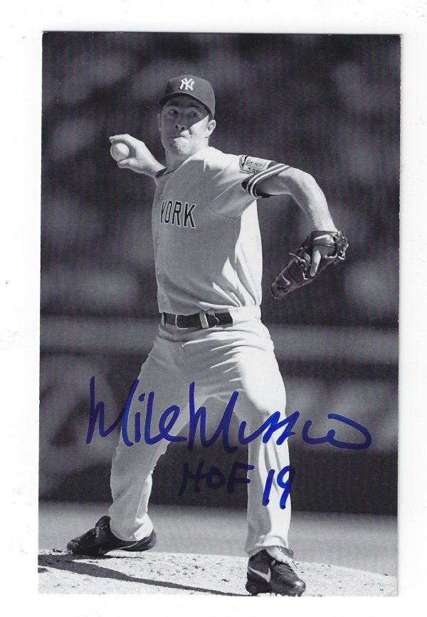 Autographed MIKE MUSSINA New York Yankees Black and White Postcard.