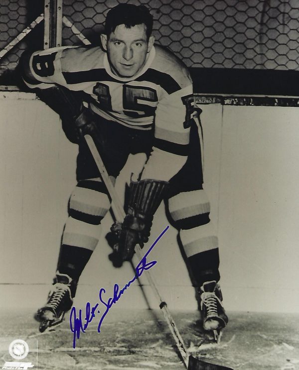 Here is an AWESOME item for Boston Bruins and NHL Hockey fans and collectors! It’s an 8″ x 10″ glossy photo of HOF Hall of Fame member Milt Schmidt! AND IT’S AUTOGRAPHED! It’s signed in blue sharpie and is GORGEOUS!