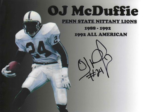 Autographed OJ MCDUFFIE 8X10 Penn State University photo. Signed in sharpie.