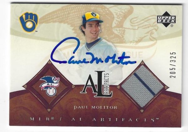 Autographed PAUL MOLITOR Milwaukee Brewers 2005 Upper Deck AL Artifact Card .