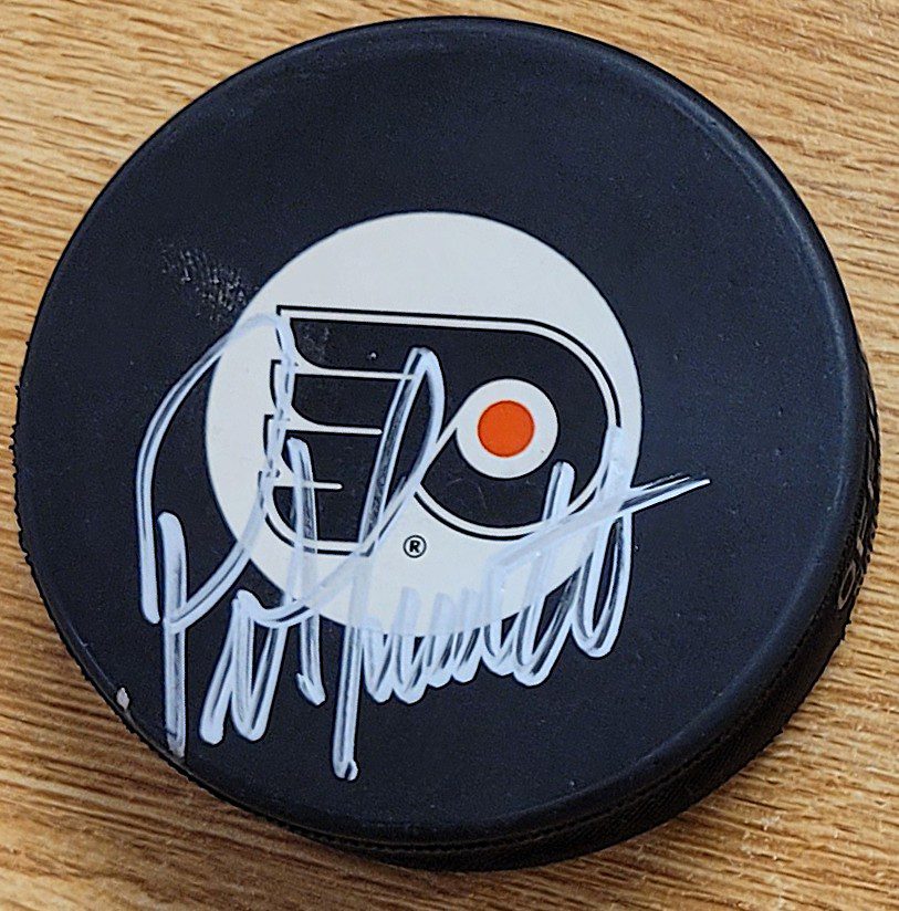 Autographed PETER LAVIOLETTE Philadelphia Flyers Hockey Puck. Signed in sharpie.