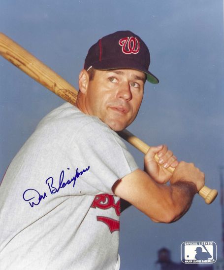 Here is an UNIQUE item for Washington Senators baseball fans and collectors! It’s a COLOR 8″ x 10″ glossy photo of DON BLASINGAME! AND IT’S AUTOGRAPHED! It’s signed in blue sharpie.