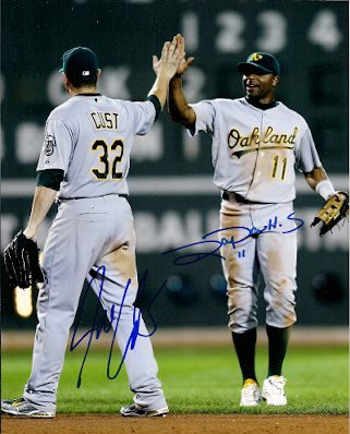 Here is an UNIQUE item for Oakland A’s baseball fans and collectors! It’s a color 8″ x 10″ glossy photo of JACK CUST AND RAIJI DAVIS! AND IT’S AUTOGRAPHED!