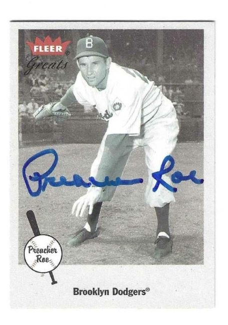 Autographed PREACHER ROE 2002 Fleer Greats of the Game Card, #59.