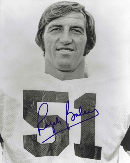 Autographed RALPH BAKER 8X10 New York Jets photo. Signed in blue sharpie