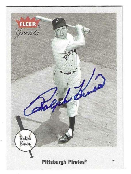 Autographed RALPH KINER 2002 Fleer Greats of the Game Card, #94.