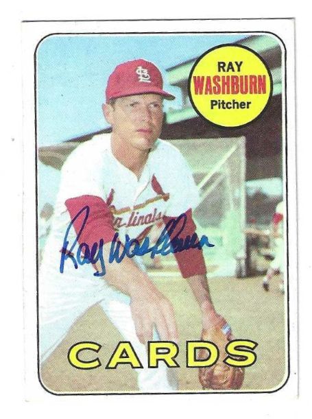Autographed RAY WASHBURN St. Louis Cardinals 1969 Topps Card