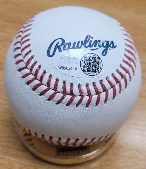 Official Rawlings Hall of Fame Logo Major League Baseball autographed by Hall of Famer, REGGIE JACKSON. Ball is signed in blue ball point pen. JSA Witness Hologram.