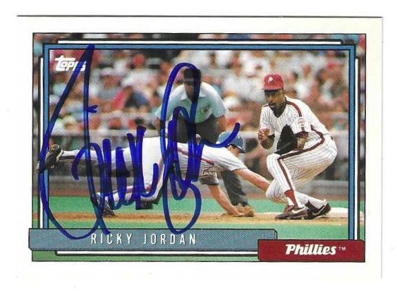 / Autographed RICKY JORDAN Philadelphia Phillies 1992 Topps Card