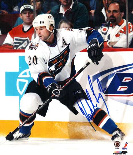 Autographed ROBERT LANG 8×10 Washington Capitals photo. Signed in blue sharpie.